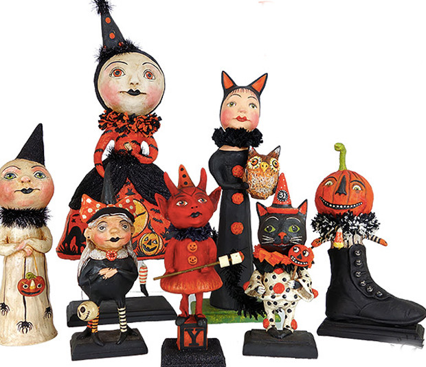 We'll, these are some very unusual and quirky Halloween Collectibles by Debra Schoch! Debra's holiday-themed figurines are inspired by turn of the century books, toys, postcards, dolls or Deb's imagination....