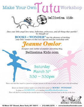 Big news! I have teamed with the wonderful Books of Wonder bookstore to present my very first Tutu Workshop and because it's the very first, it will be completely...