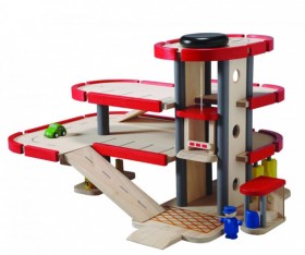 This simple little parking garage from Plan Toys looks like so much fun. I want to get in there and start arranging those cars myself and perhaps even park my...