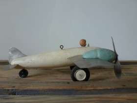 Believed to date back to the late 1940's, a handcrafted baby pilot mobile, made from wood and stainless steel. What a great, new shop of my cyber friend Deborah Beau...