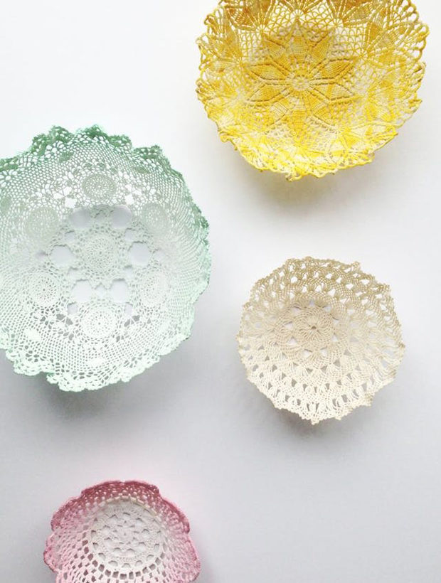 Just found the Coolest Lace Doily Bowls. I've always liked lace doilies and wonder what else one can do with them apart from having them gather dust under knick knacks in grandma's...