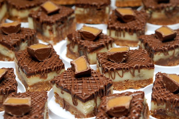 I'm in a kind of gooey dessert mood, so here are some Rollo Cheesecake Bars for you! I dare you to get through more than a half of one...