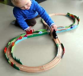 What a fabulous idea from Czech company, Pepeto. They create customized foam and felt scenery and houses for Ikea train tracks or any tracks of the same style....