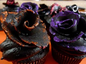 Well, Halloween is coming up sooner than we think and I've been searching for unusual Halloween desserts that don't involve pumpkins or ghosts or witches. And I came across... Black Velvet Rose Cupcakes For Halloween