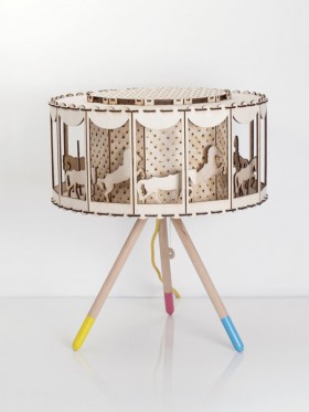 Take a look at this wonderful laser-cut carousel lamp by Polish company, SmagaProjektanci. Just the best lamp for a kid's room. This assemble-it-yourself rotating table lamp can also be painted...