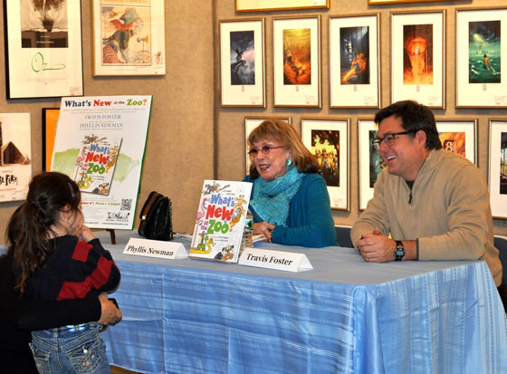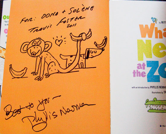 The girls are so amused by What’s New At The Zoo? This book version of the song by Betty Comden and Adolph Green from the Broadway Hit of the 60’s, Do Re Mi features wonderfully bright and quirky illustrations by Travis Foster. We were thrilled to catch up with Phyllis Newman, 2 time Tony winner, who wrote the introduction, (wife of the late Adolph Green), and Travis at their event at Books of Wonder. So, quite a collaboration! The song and book are about Central Park Zoo in the days when the poor animals had no room and were not well taken care of. Things have changed since then, and the zoo is delightful now… in case you are visiting NYC! You can buy a signed copy from Books of Wonder here of course!